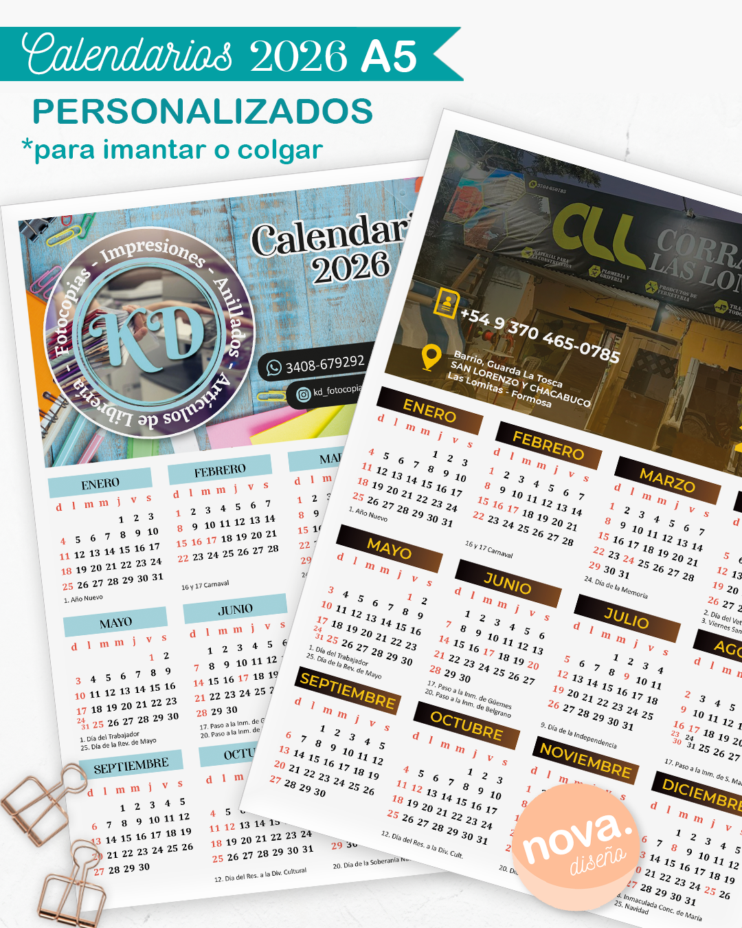 Calendarios 2024 148x210 mm personalizados en PDF A4 con 2 calendarios ó A3 con 4 calendarios para que imprimas vos mism@ en impresora hogareña o en cualquier gráfica!