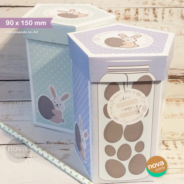 . CAJA POLIGONAL CON TAPA (150×90 mm) se Imprime con 2 hojas A3. Si la imprimís en A4 queda de 70×105 mm.