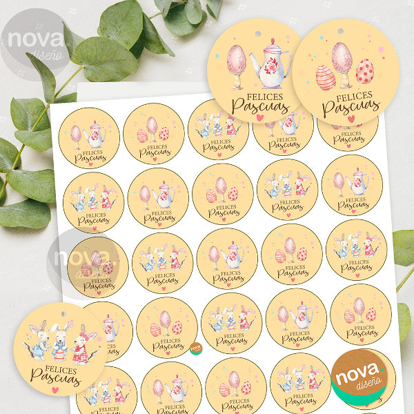 Tags o Etiquetas Circulares Imprimibles #felicespascuas para decorar tu Packaging o Productos