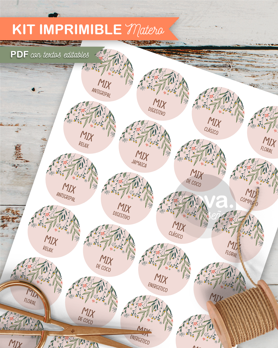 . ETIQUETAS CIRCULARES SABORES 45mm - 24 x hoja A4