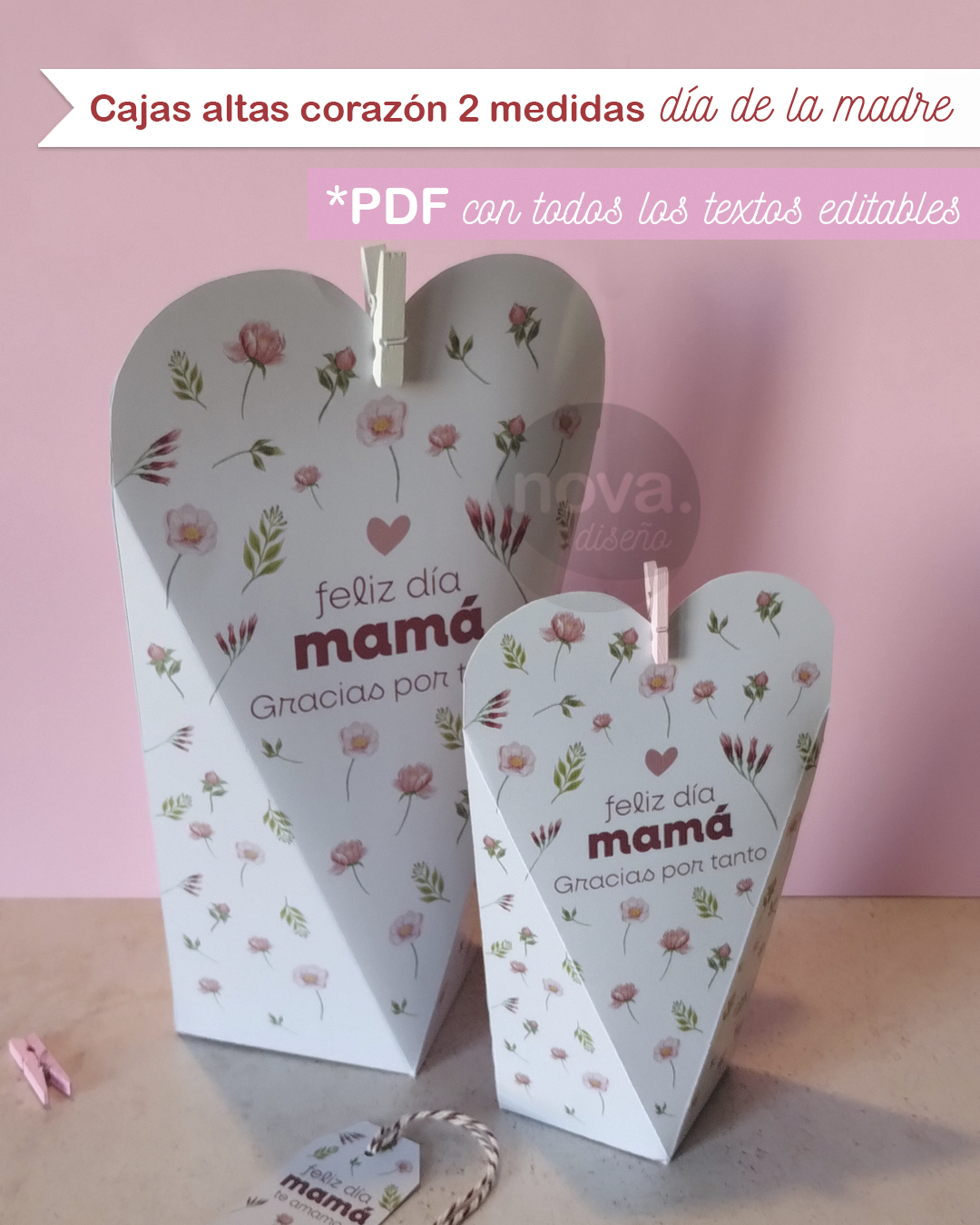 . CAJA CORAZÓN ALTA GRANDE DE 148 mm ancho x 235 mm alto x 74 mm profundidad para imprimir en 2 hojas A4
