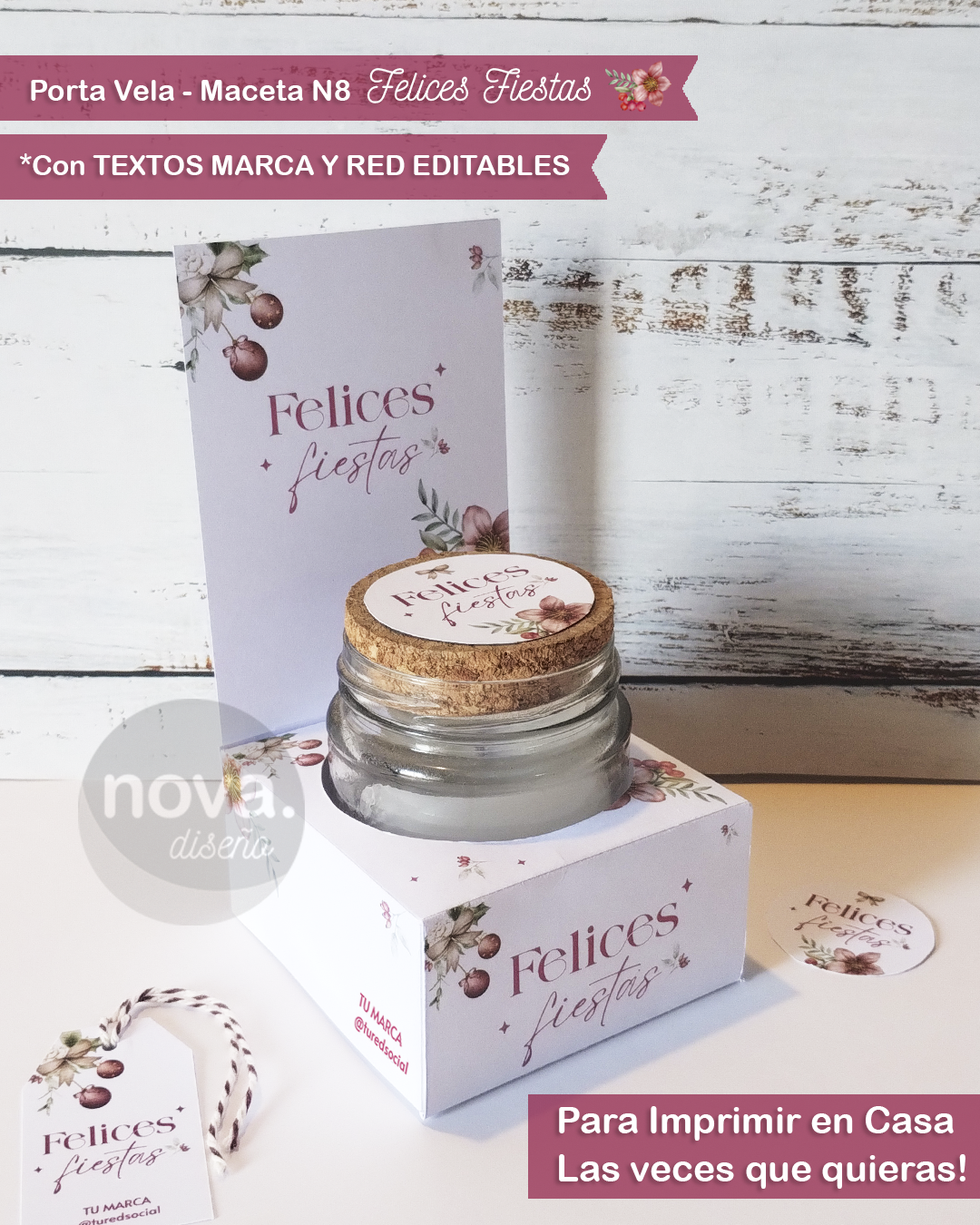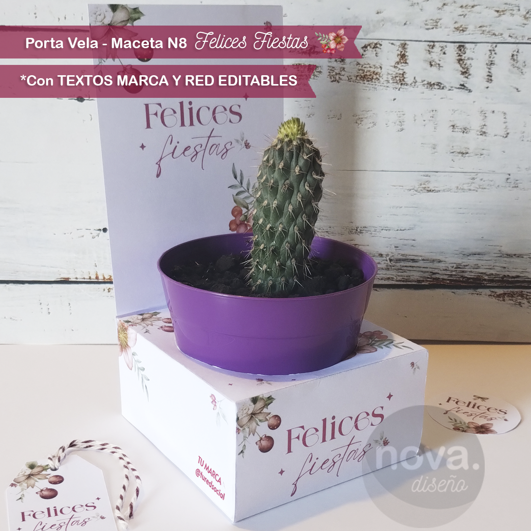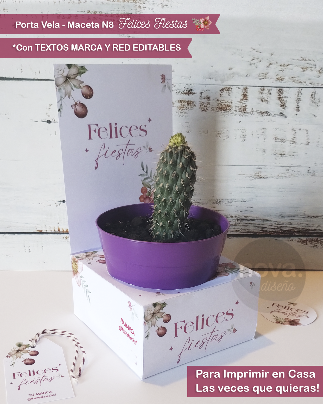 . CAJA PORTA MACETA NRO 8 Y VELA (69 mm diámetro) para imprimir en A4 con 2 hojas