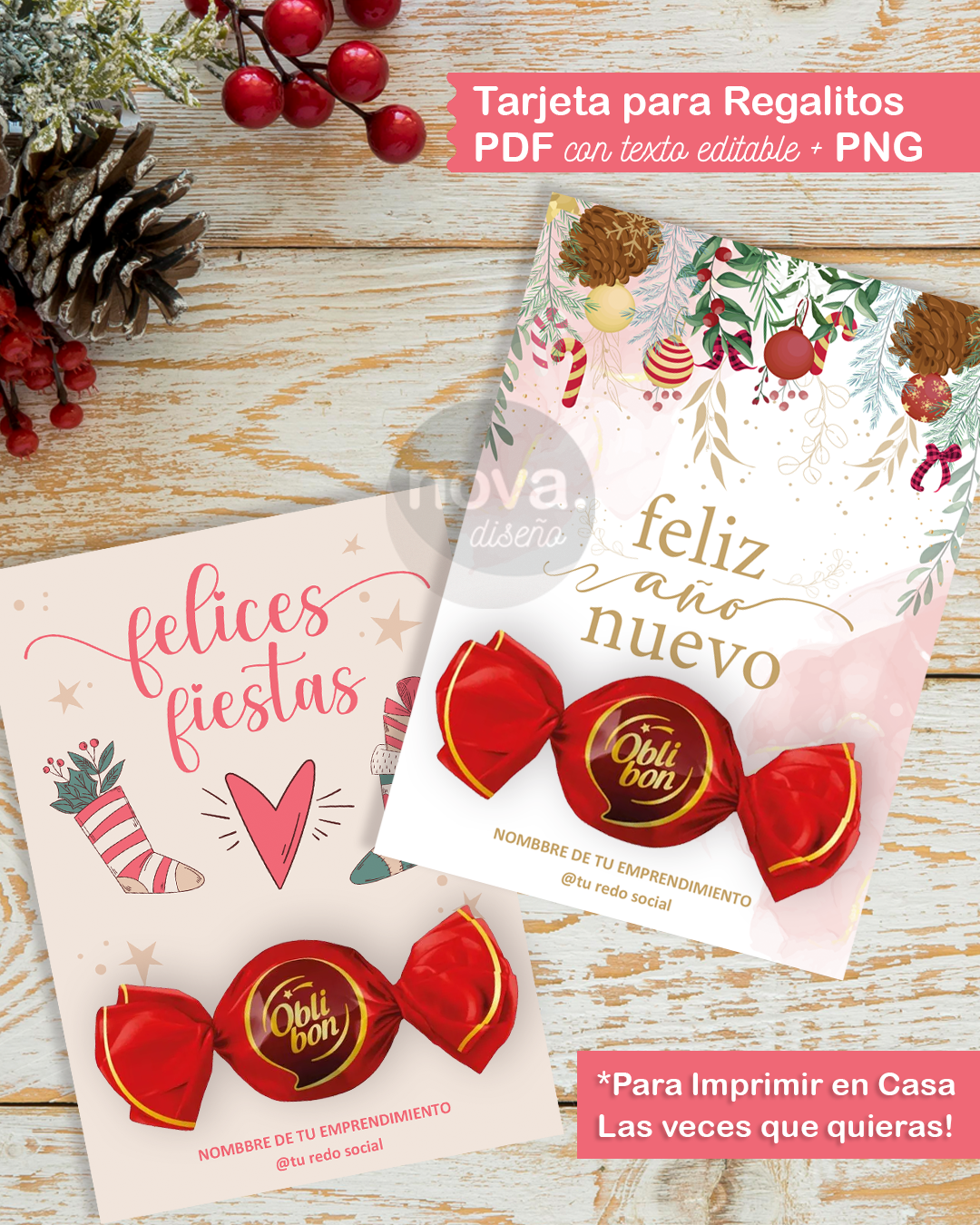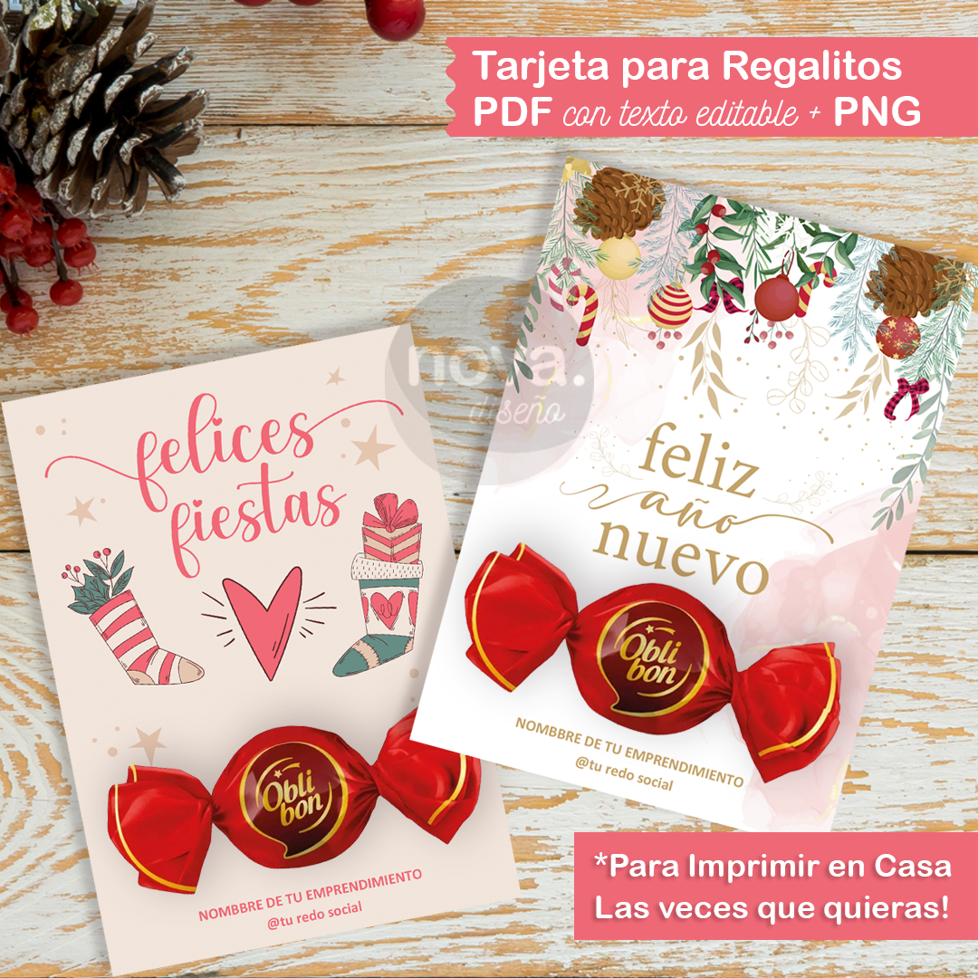 -PDF TARJETAS FELICES FIESTAS Y FELIZ AÑO100X140mm CON TEXTO DE DATOS EDITABLES 4 x HOJA A4