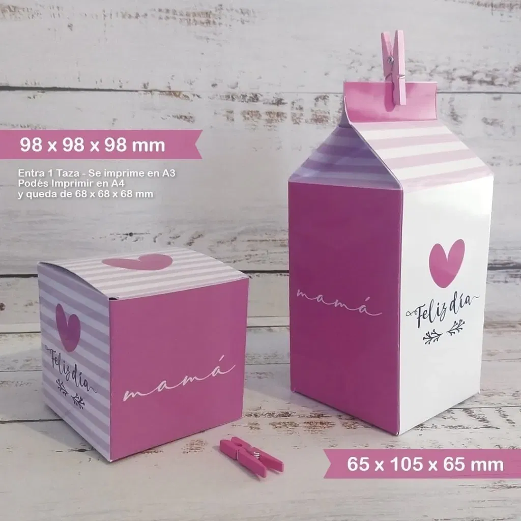 . MILK BOX (65x105x65mm) Se imprime en 1 Hoja A4 . Si la Imprimís en A3 queda de 90x148x90mm aprox.