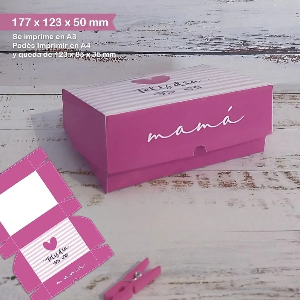 . CAJA TIPO ALFAJORES (177x123x50mm) se Imprime en 1 hoja A3. Si la imprimís en A4 queda de 123x85x35mm.