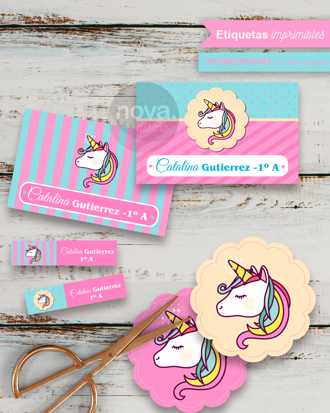 - Etiquetas 5 x 8 cm ideales para cuadernos y carpetas