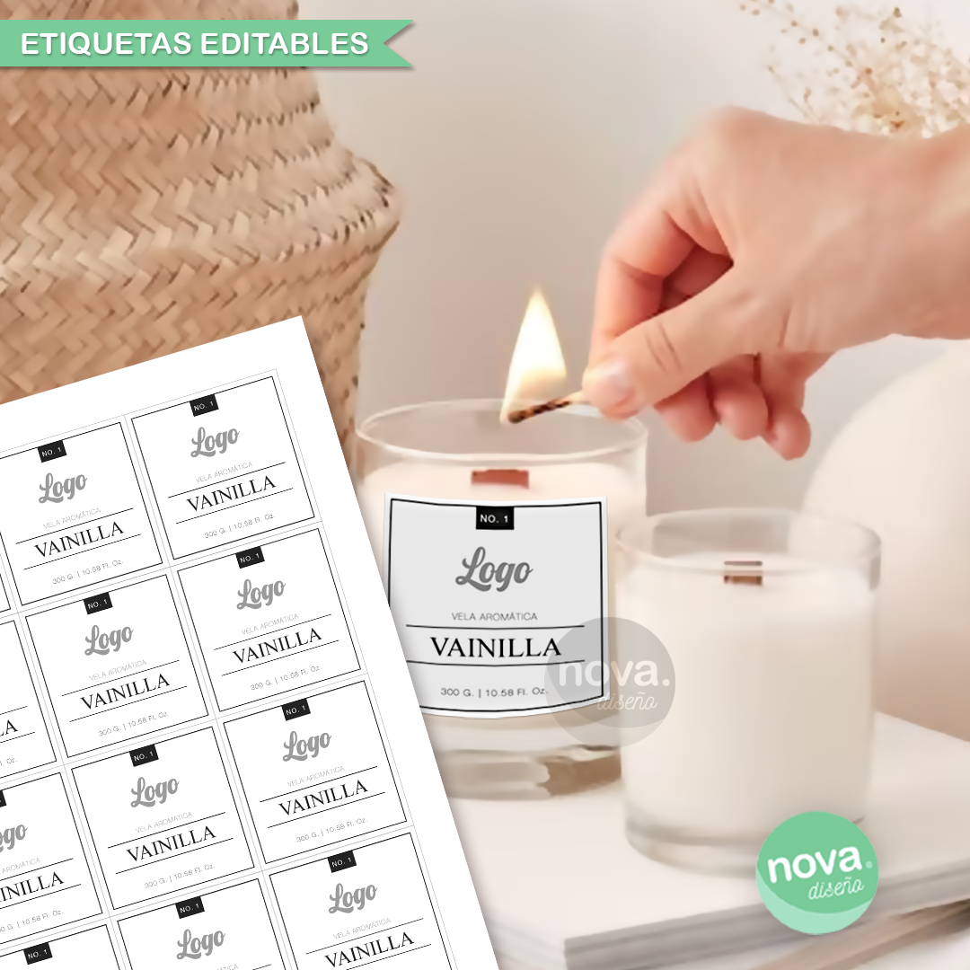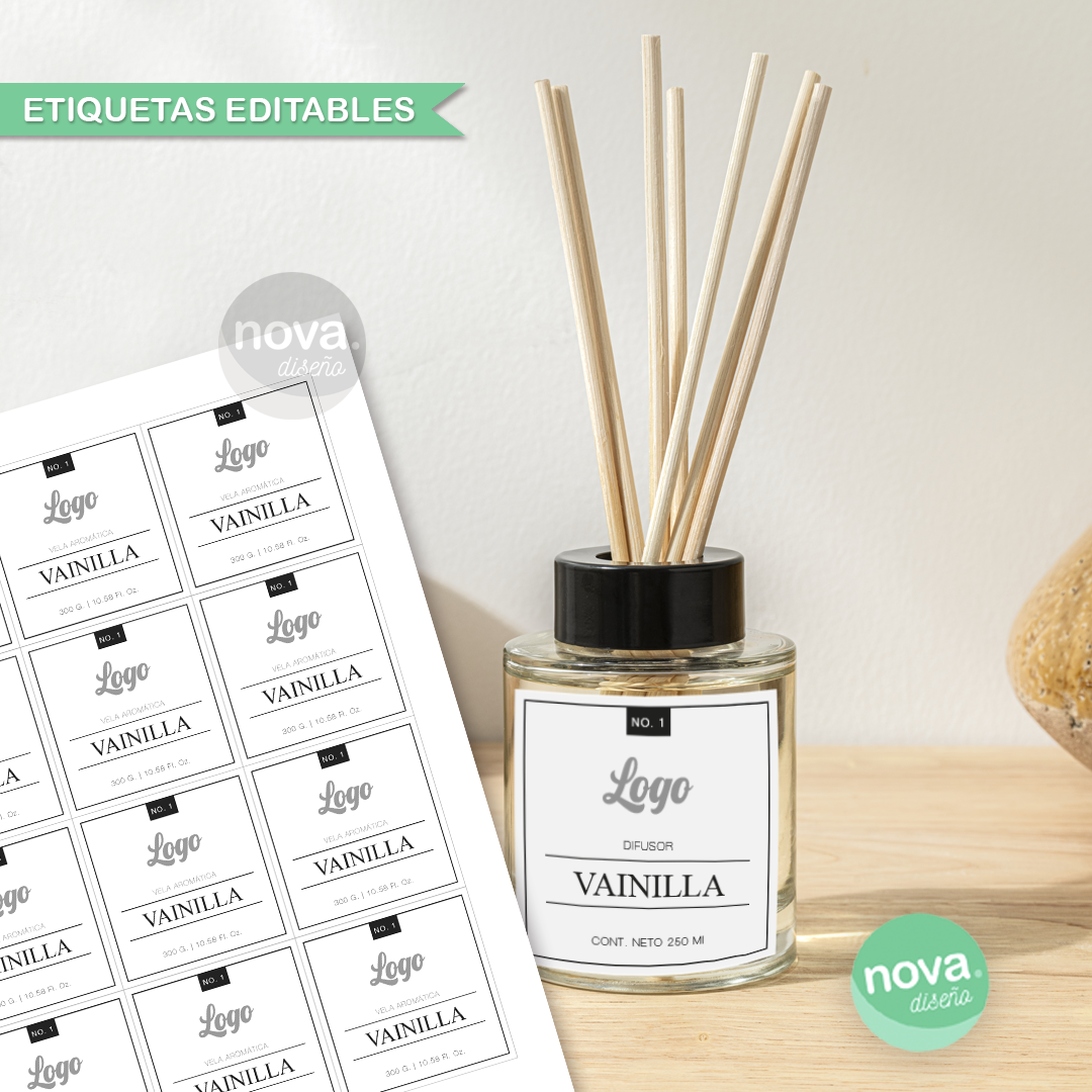 . ETIQUETAS 6X6 VELAS-DIFUSOR - 12 x Hoja A4