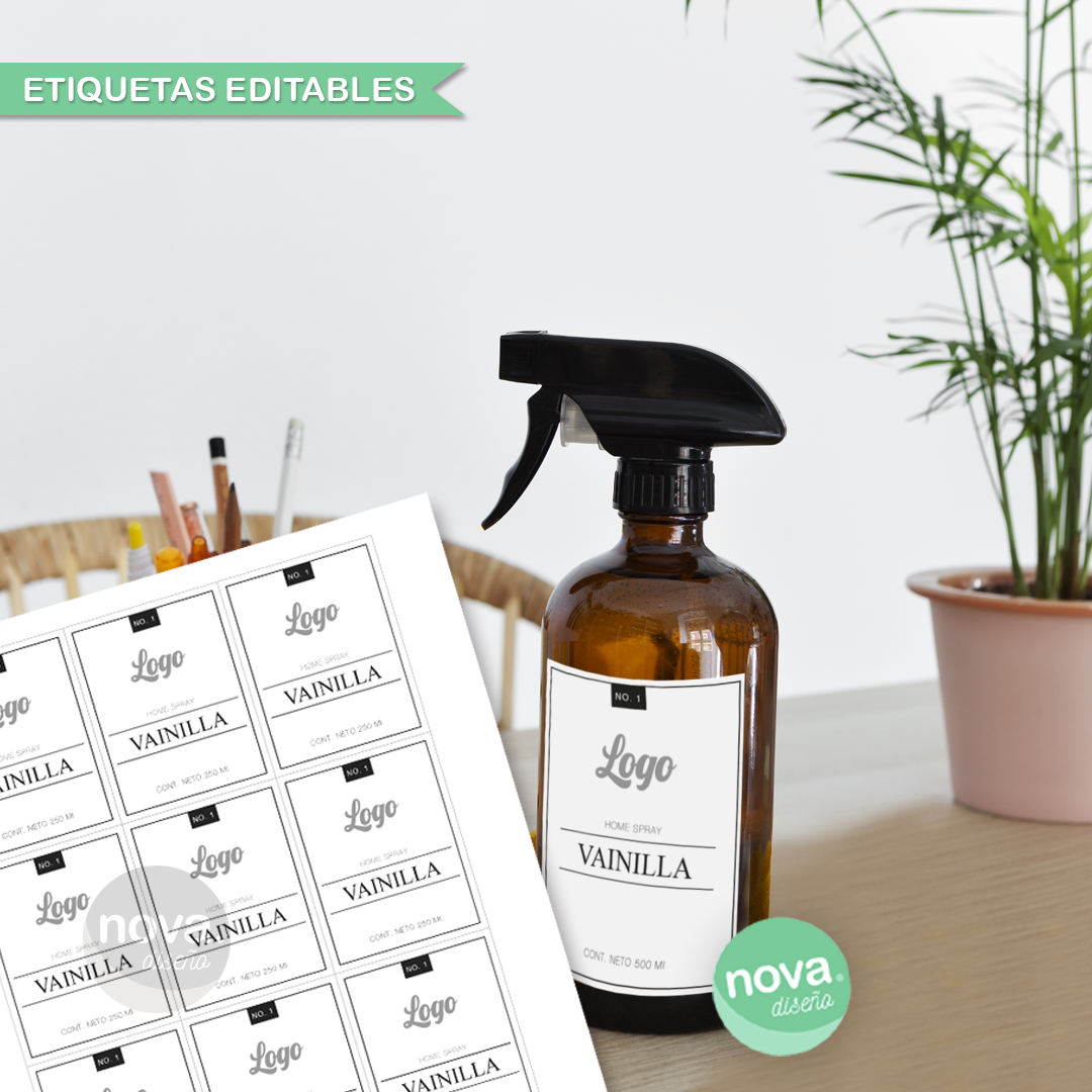 . ETIQUETAS 7X9 HOME SPRAY - 6 x Hoja A4